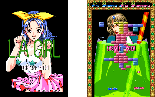 Tym razem dump z zasobów Guru - koreańska przeróbka Play Girls (kopia Taito L-System hardware zrobiona na trzech układach TPC1020 (FPGA Texasa)) . Zmieniono tytuł i wsadzono nową grafikę tła - soft anime (dlaczego nie tentacles z 'La Blue Girl' ?). Grywalność bez zmian ...